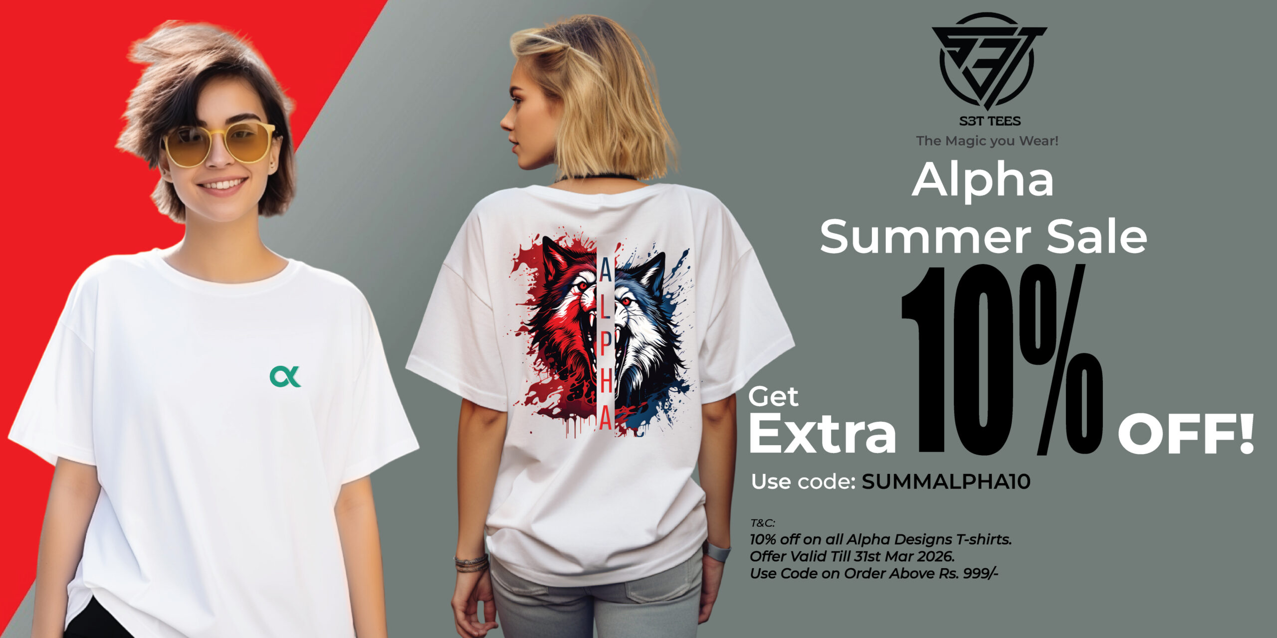 Alpha Dual Wolf Regular Fit Graphic T-Shirt – Red & Blue Split Wolf Design | Bold Streetwear Tee