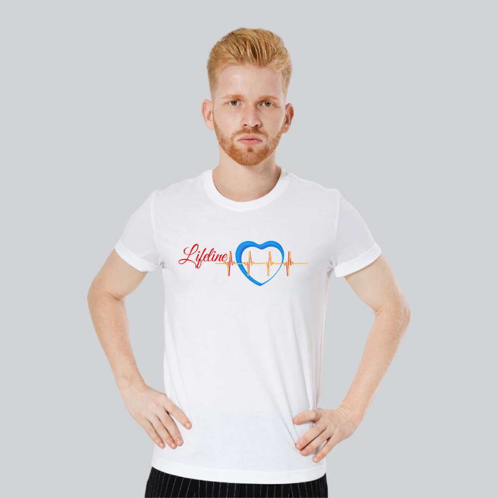 Mens 100% Cotton Printed Round Neck Sustainable Fabric Lifeline T-shirt
