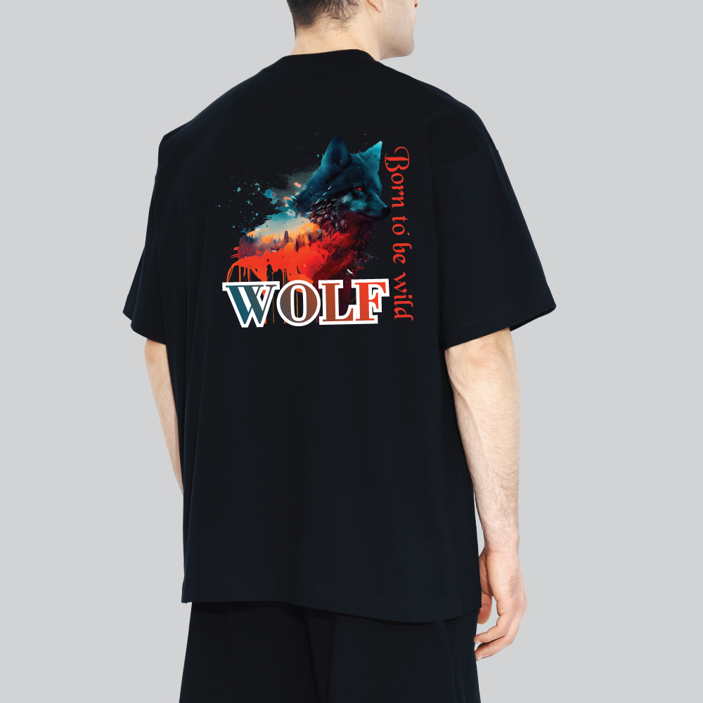 Unisex 240 GSM 100% Cotton Graphic Printed Round Neck Born to be Wild – Wolf Oversized T-shirt
